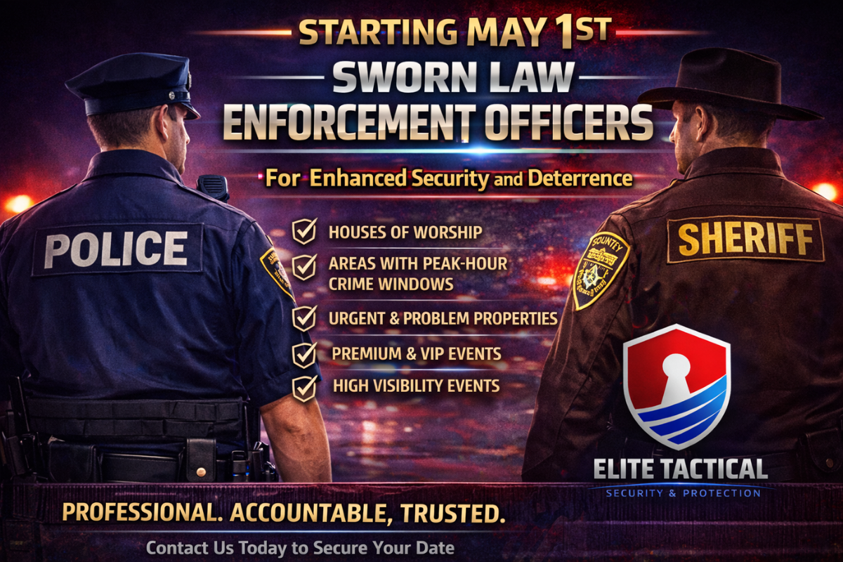 Starting May 1st, we will officially offer Sworn Law Enforcement Officers—including both Police Officers and Sheriff’s Deputies—as part of our security solutions.
