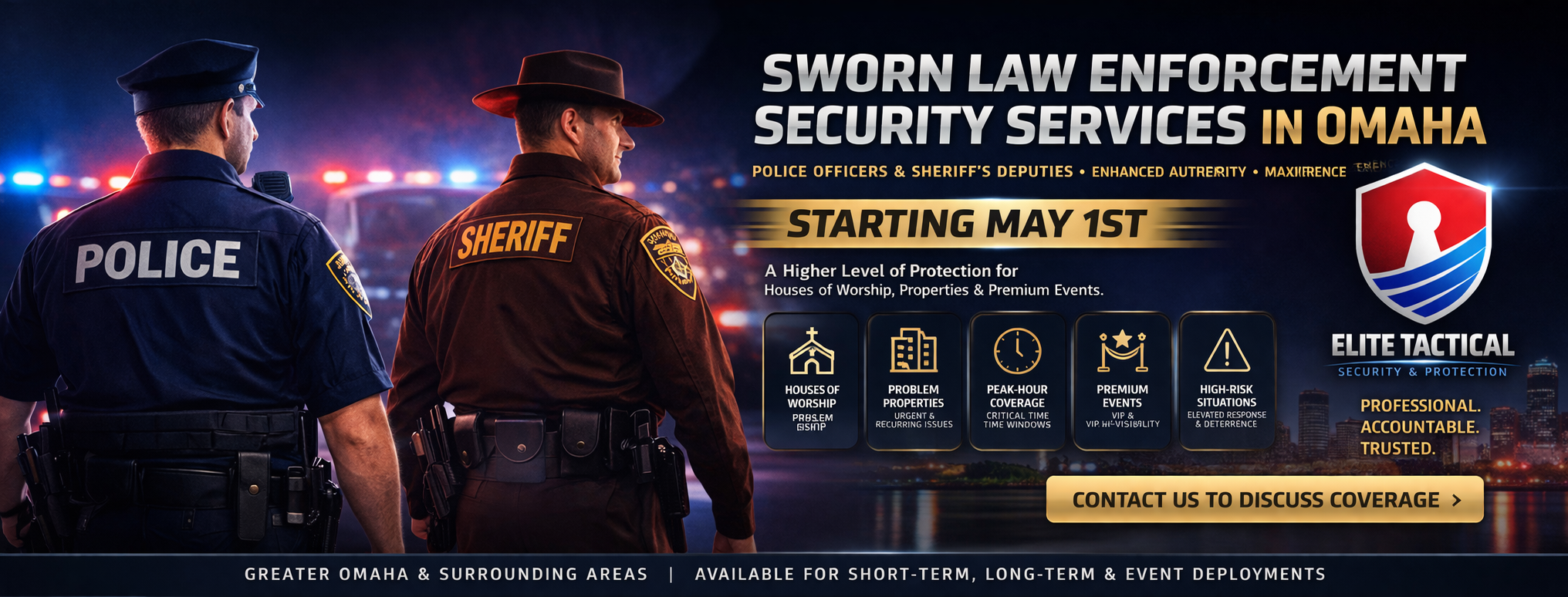 Yes. Starting May 1st, Elite Tactical will offer sworn law enforcement officers, including police officers, for select security deployments in Omaha and surrounding areas.